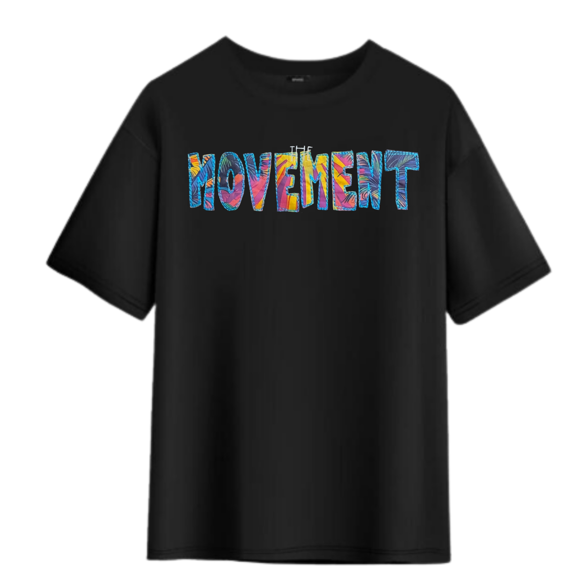 Each shirt is crafted using a premium mixed-media process for a unique, textured finish. The design starts with printed cotton fabric, which is carefully cut and heat-pressed onto the garment. Detailed embroidery then stitches the edges. This combination of fabric application and embroidery gives every piece a handmade feel with elevated quality and durability.